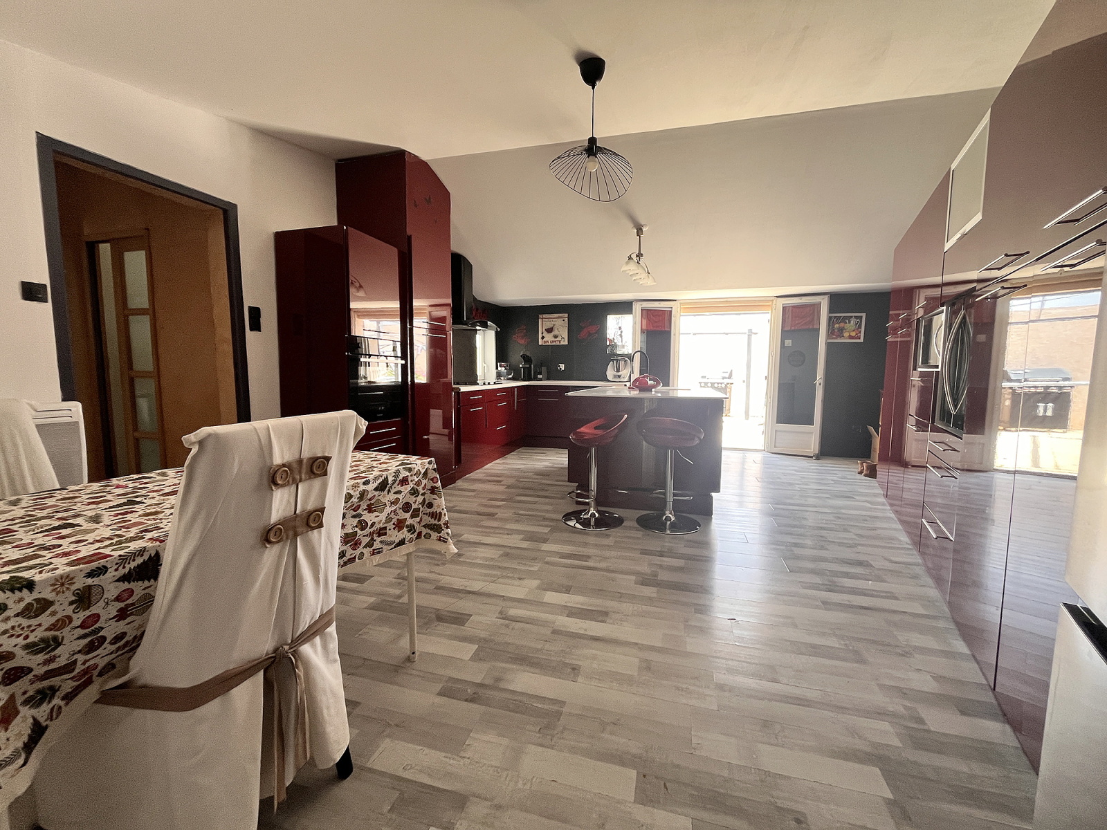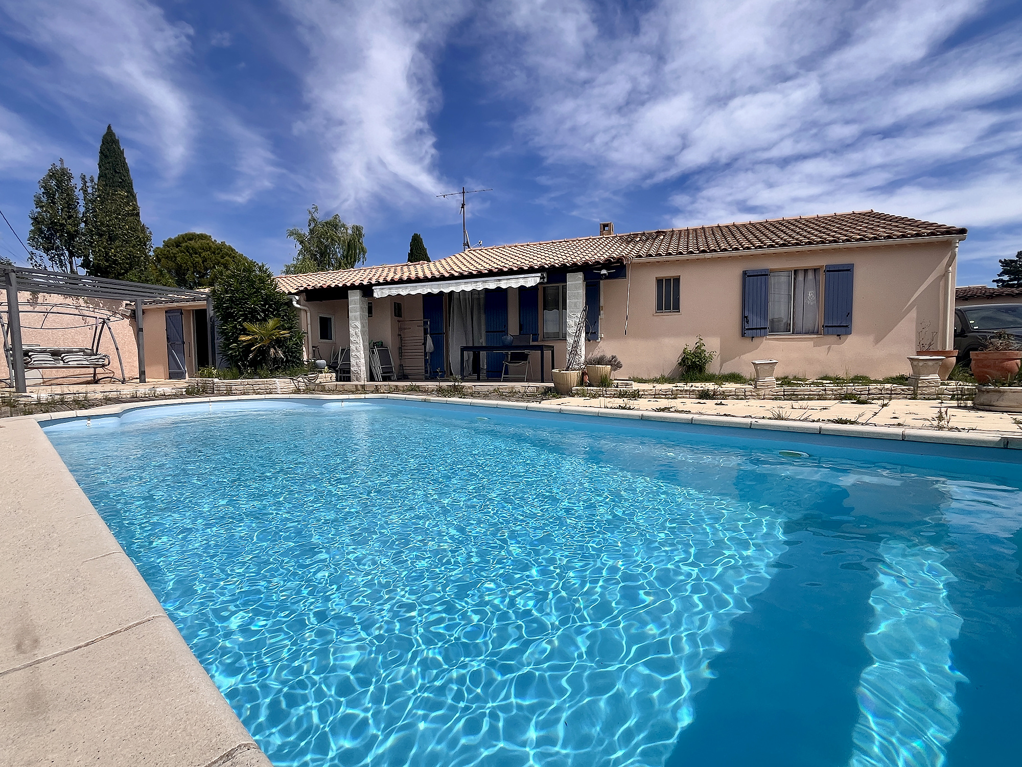 Caromb (84330)A proximité immédiate du village et de la campagne environnante, cette villa de plain-pied avec piscine propose une grande cuisine- coin repas de plus de 30 m² ainsi qu'un grand séjour de 46 m². 3 chambres dont une d'environ 26 m² incluant un dressing, 2 salles d'eau et WC.